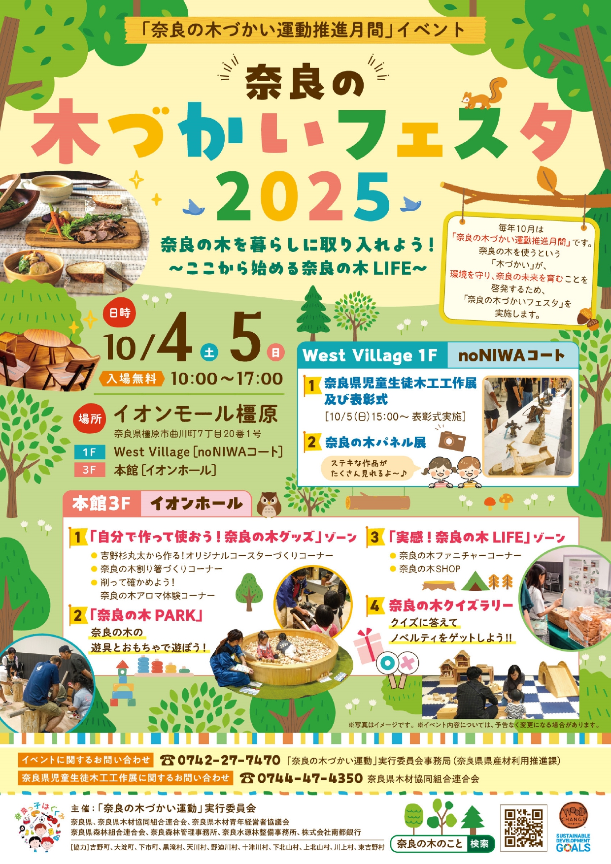 ~奈良の木づかいフェスタ2025開催のお知らせ~ 開 催 日 :2025年10月4日(土)・5日(日) 各日10:00~17:00 開催場所:イオンモール橿原 West Village1階 noNIWAコート …