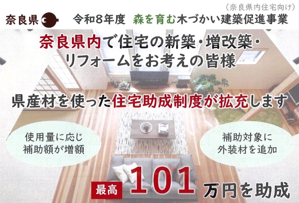 令和8年度 「県産材を使用した住宅助成事業」の受付を開始いたしました